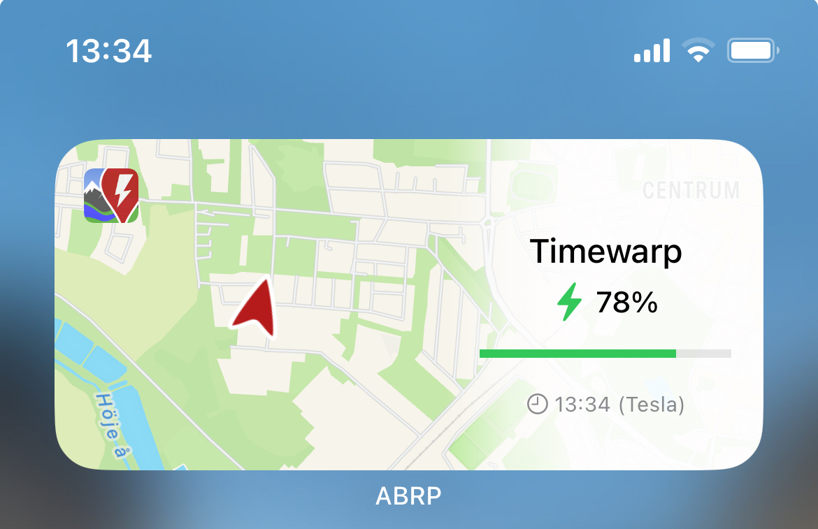 Get an up-to-date view of your vehicle connected to ABRP by adding the beautiful iOS widget to your phone.