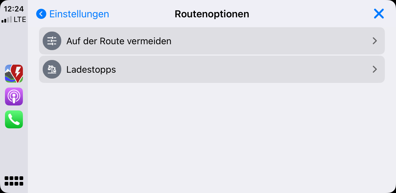 Calling up the charging stop settings in Carplay is only possible once. When I try to click on it again nothing happens. This only happens in navigation mode.