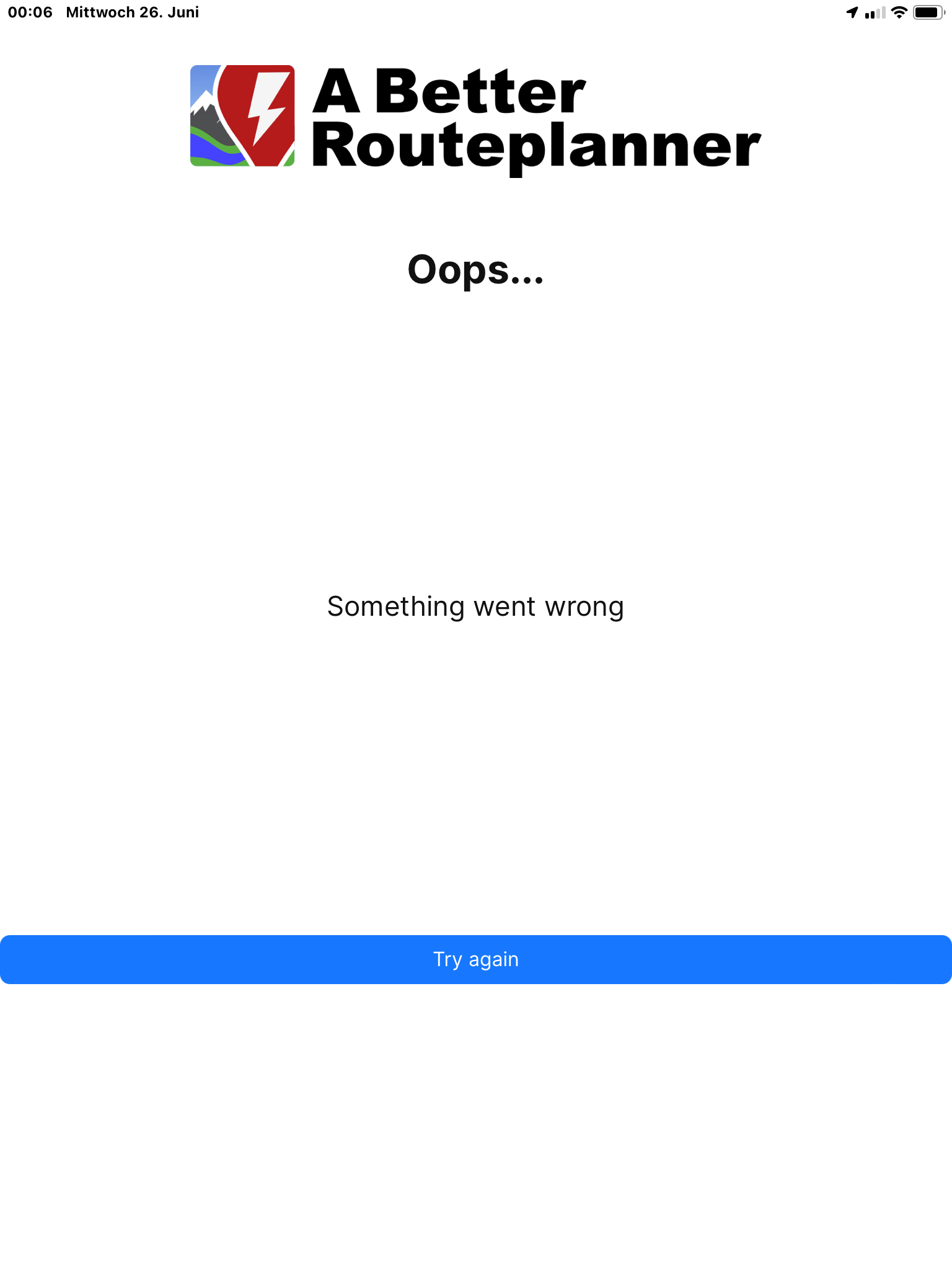 When I now rotate the display to portrait mode, ABRP crashes with Oops.