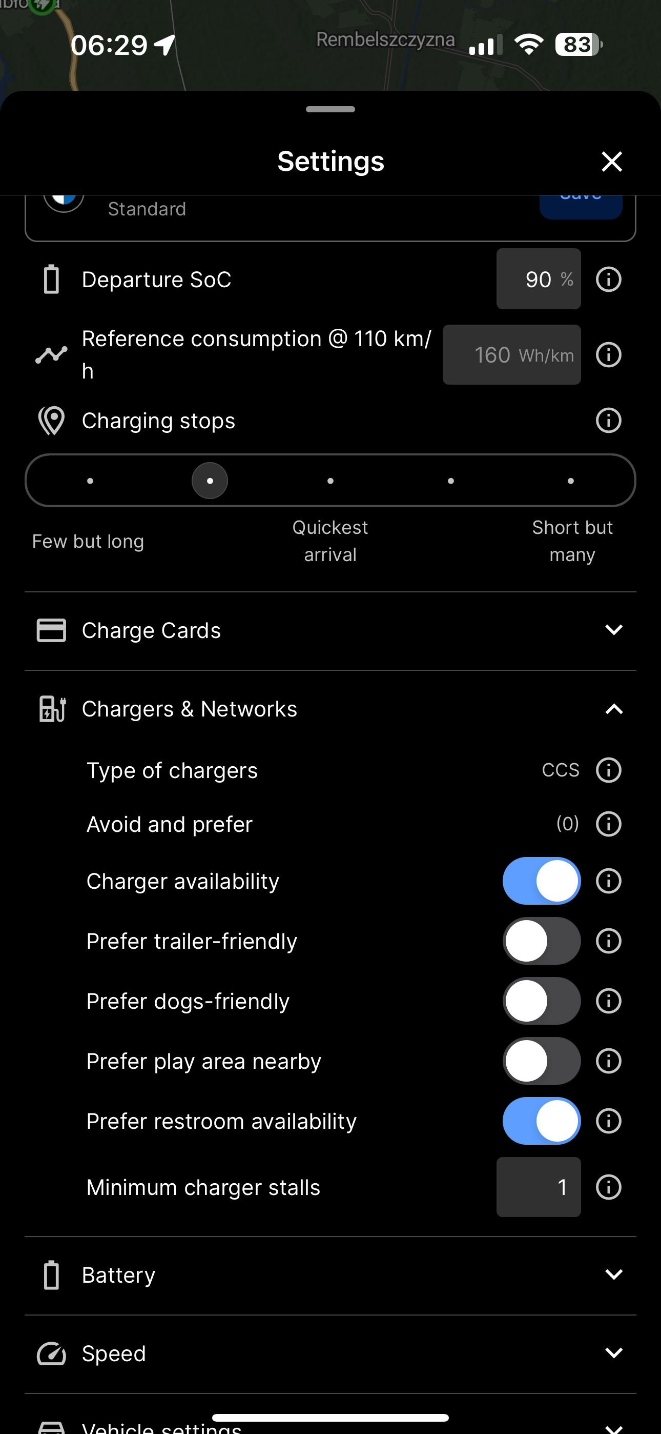 One feature that I really missed and would like to have is add a possibility in the settings to find and calculate charges close to the restaurant or cafe (like we have for a restrooms, trailers, pets friendly)