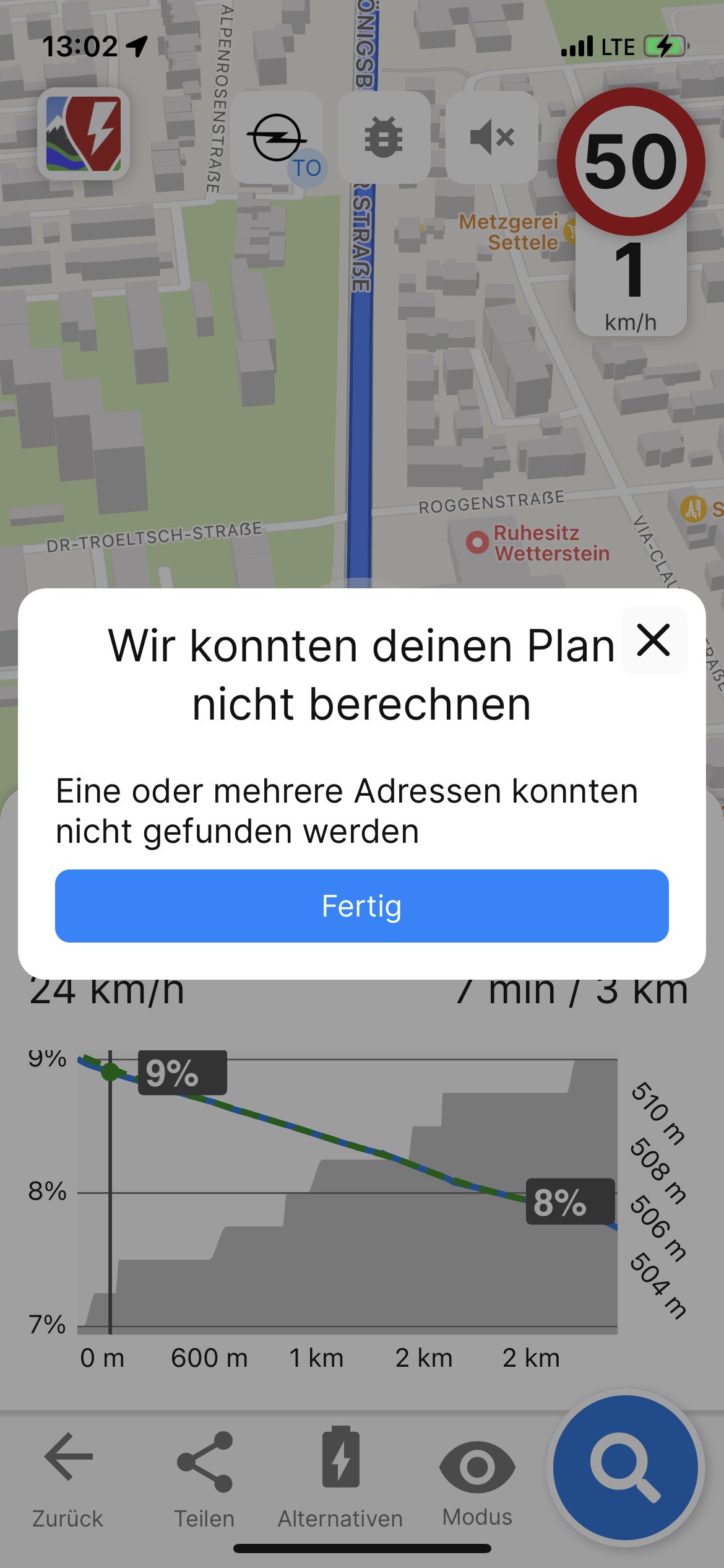 After changing route options in CarPlay the recalculation of the plan results in following error which is visible only on the iPhone: βwe could not calculate your plan. On or more addresses couldnβt be found.β