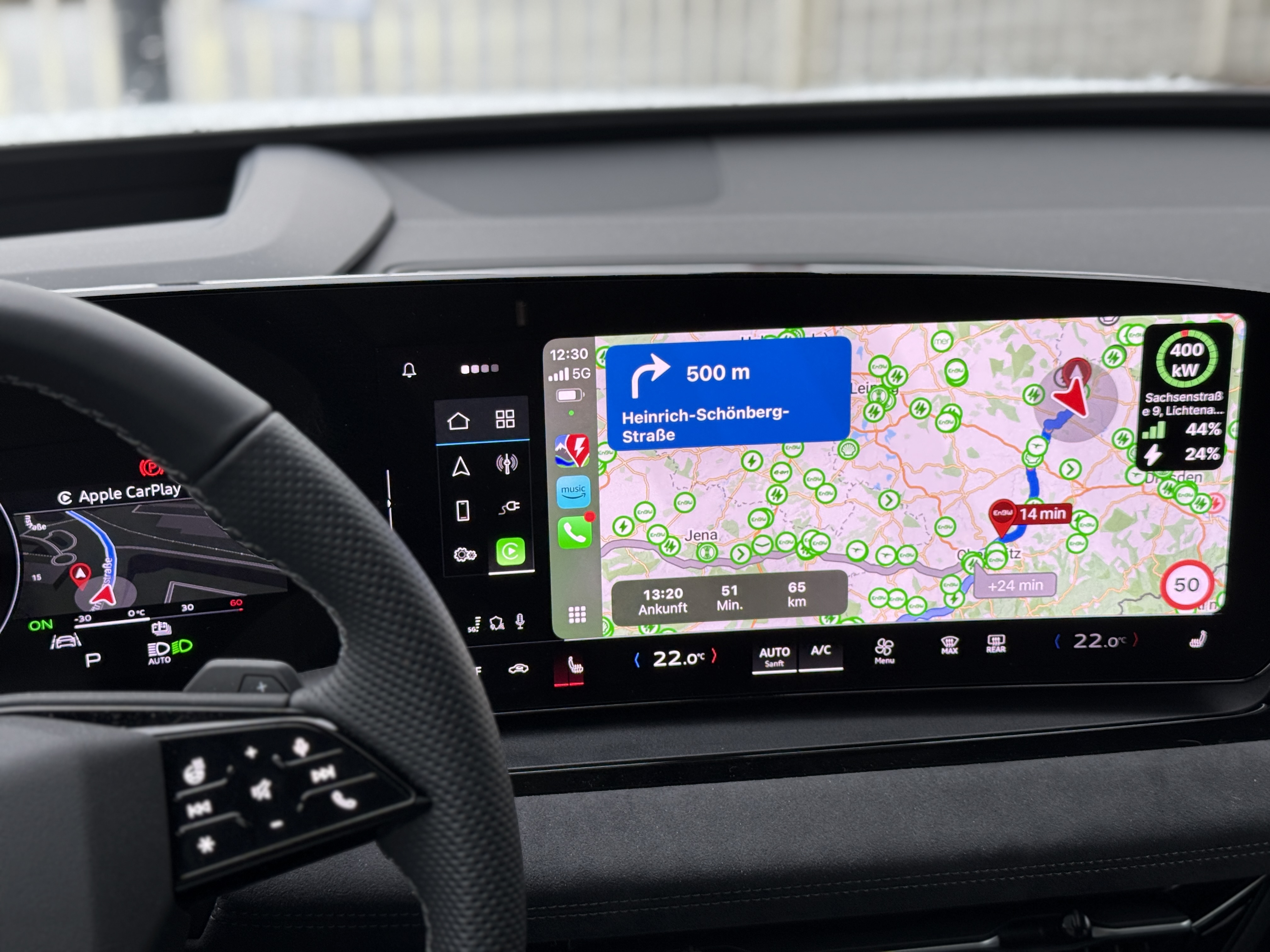 Since driving my new Audi SQ6 e-tron the ABRP map behaves weird over CarPlay. That means, the “big map” when opening ABRP in CarPlay is zoomed out to extreme extents and I just see the arrow rotating as I drive. Sometimes it displays a view of north america when I’m located in Germany. When I plan a route and start navigating, it zooms in to show the entire route, but it is stuck in that view for the whole journey. That is, no animated 3D view that follows the route, just a 2D birdview of the entire route.