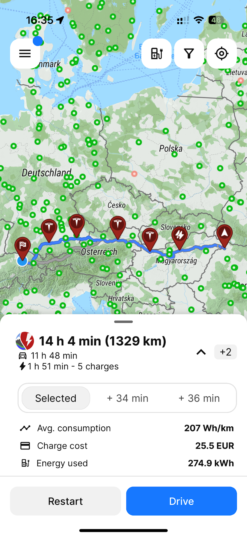 FYI: I have ABRP Premium, using Real-time traffic, 100% reference speed, 130 km/h max speed, Realtime weather.