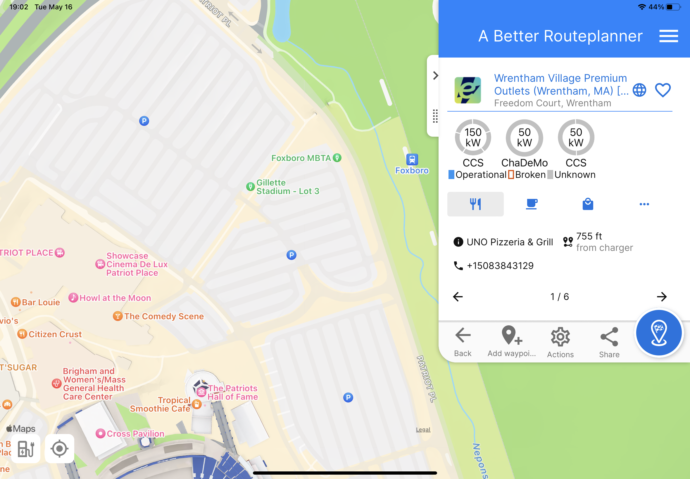 Do you have the Enel network in the app? There are three sets of chargers around Gillette Stadium in Foxboro, Massachusetts, USA that should be in your app.
