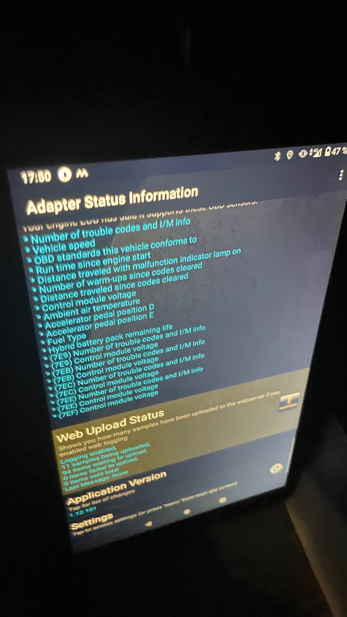 Uploading the live data to the ABRP web server is currently not working, the data is in the Torque Pro queue waiting for upload, but it seems that Torque Pro cannot connect to the ABRP web server or the data is not accepted by the ABRP web server.