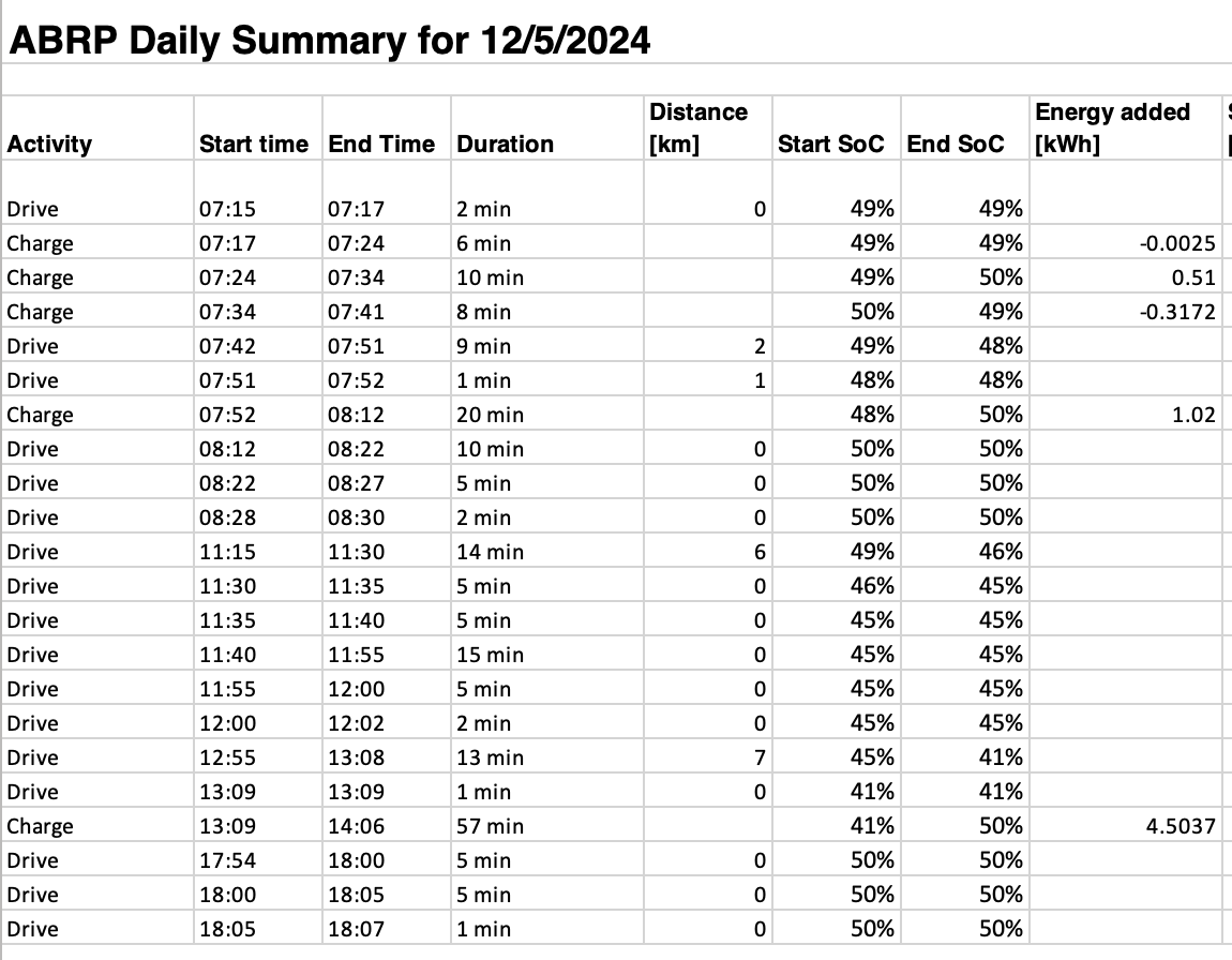 Using the new Over-the-air live data for Tesla with a 2021 Model 3, it looks like I get too many Charge and Drive records. This is from today where I did three drives. For example, the Charging session between 07:52 and 11:15 is logged as one Charge session for 20 min from 48 % to 50 %, then three Drive-sessions with a travel of 0 km before next real Drive session at 11:15.