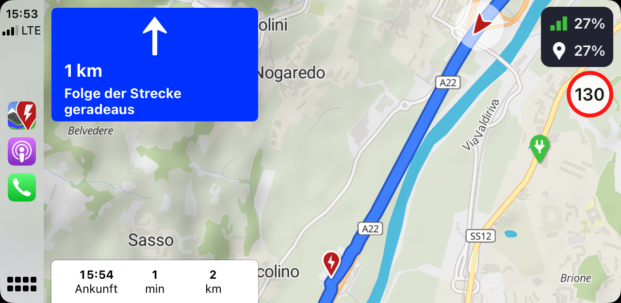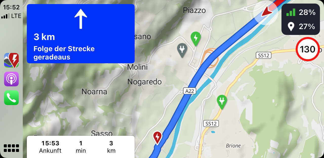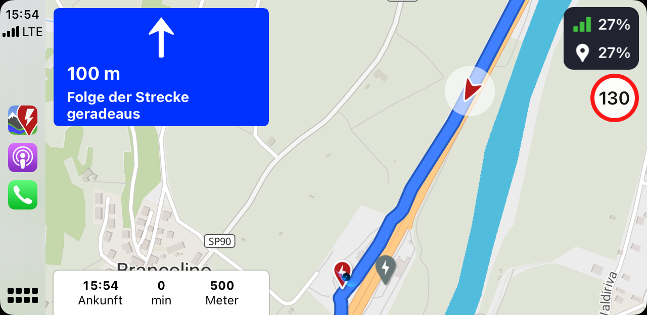 When you drive in next destination view, beginning approx. 5km before the next turning instruction, ABRP zooms in the map, so you can only see the following 500 to 800m of the street.
