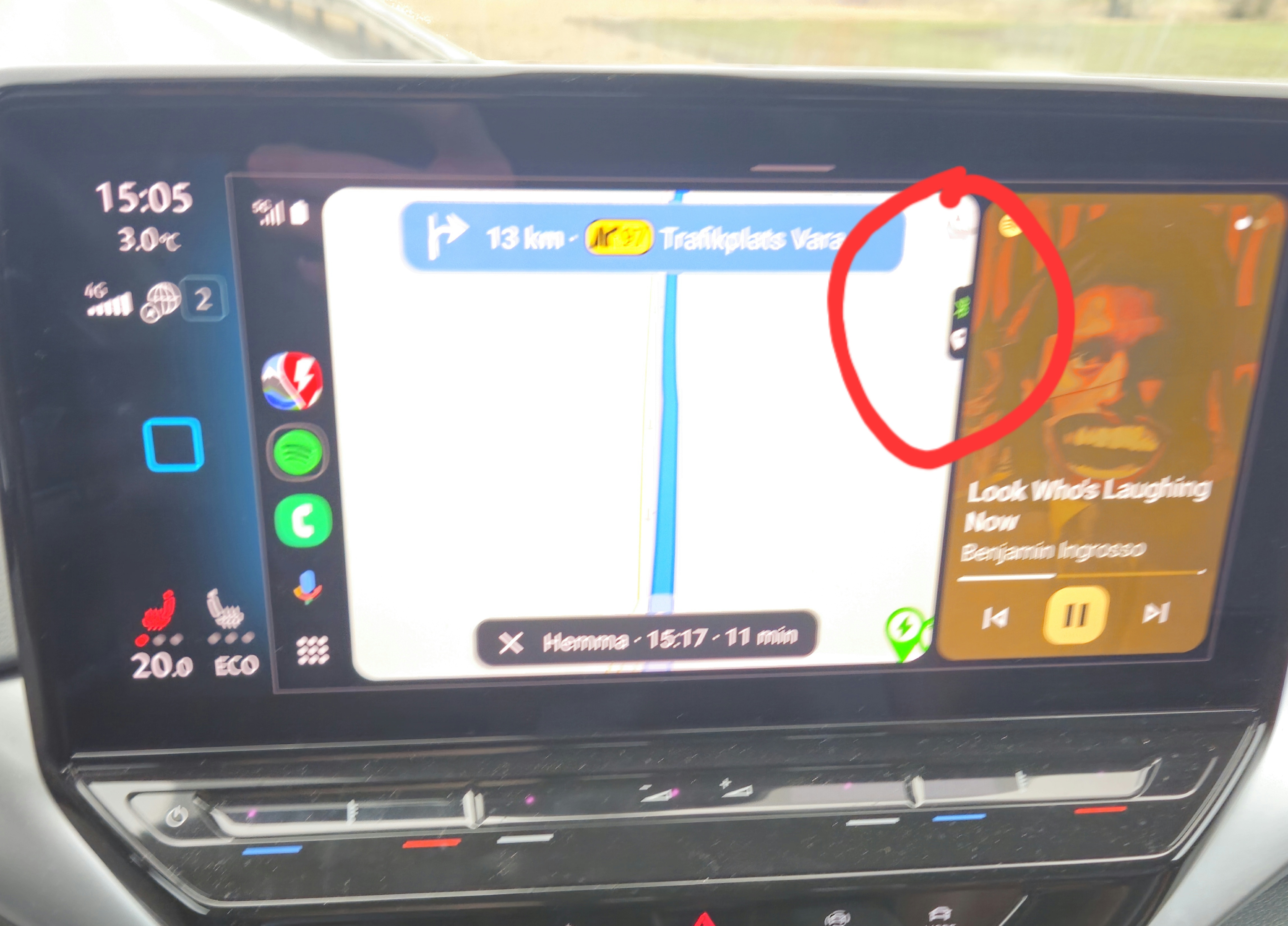 As seen in the picture, when in Android Auto the little box for batteryinfo is to much to the right, out of screen when in shared app/compact mode.