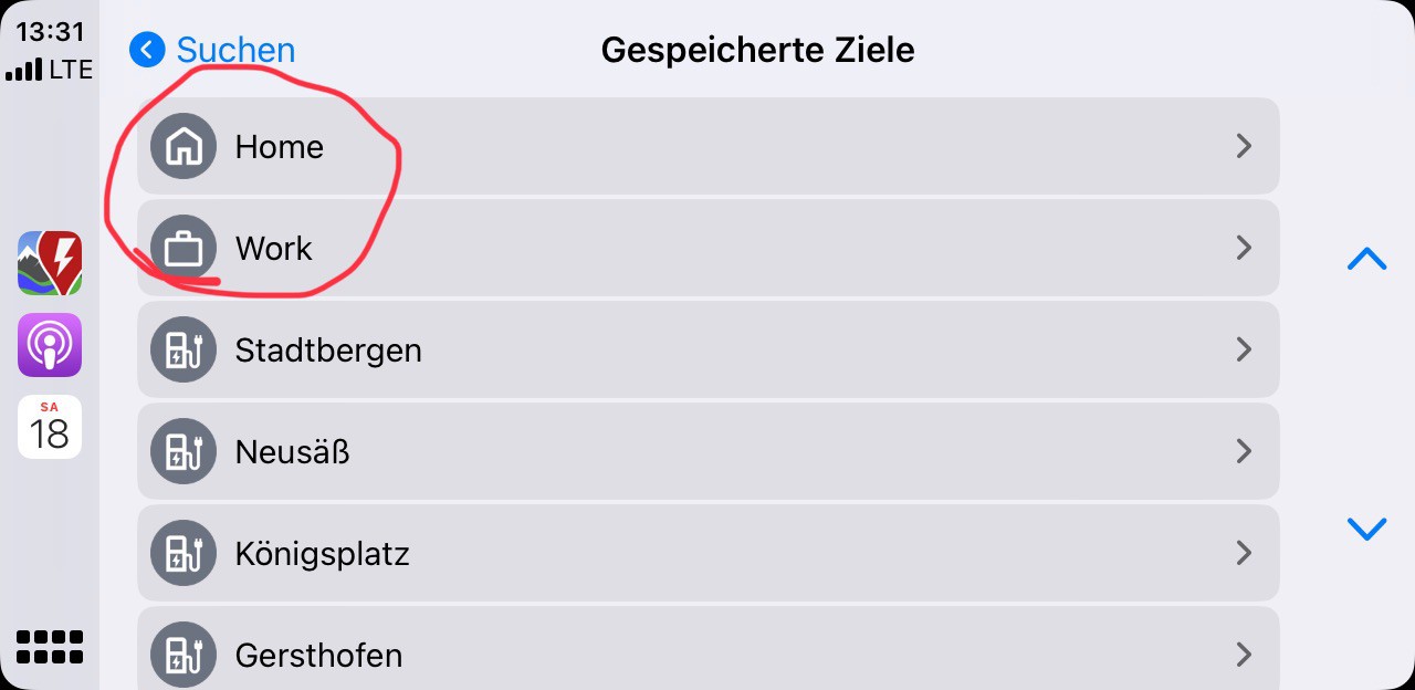 Despite the words Work and Home in saved destinations on the iPhone display are translateable into user language (screenshot #1), the same words Work and Home in saved destinations at the CarPlay display (screenshot #2) are only in english language and not translateable.