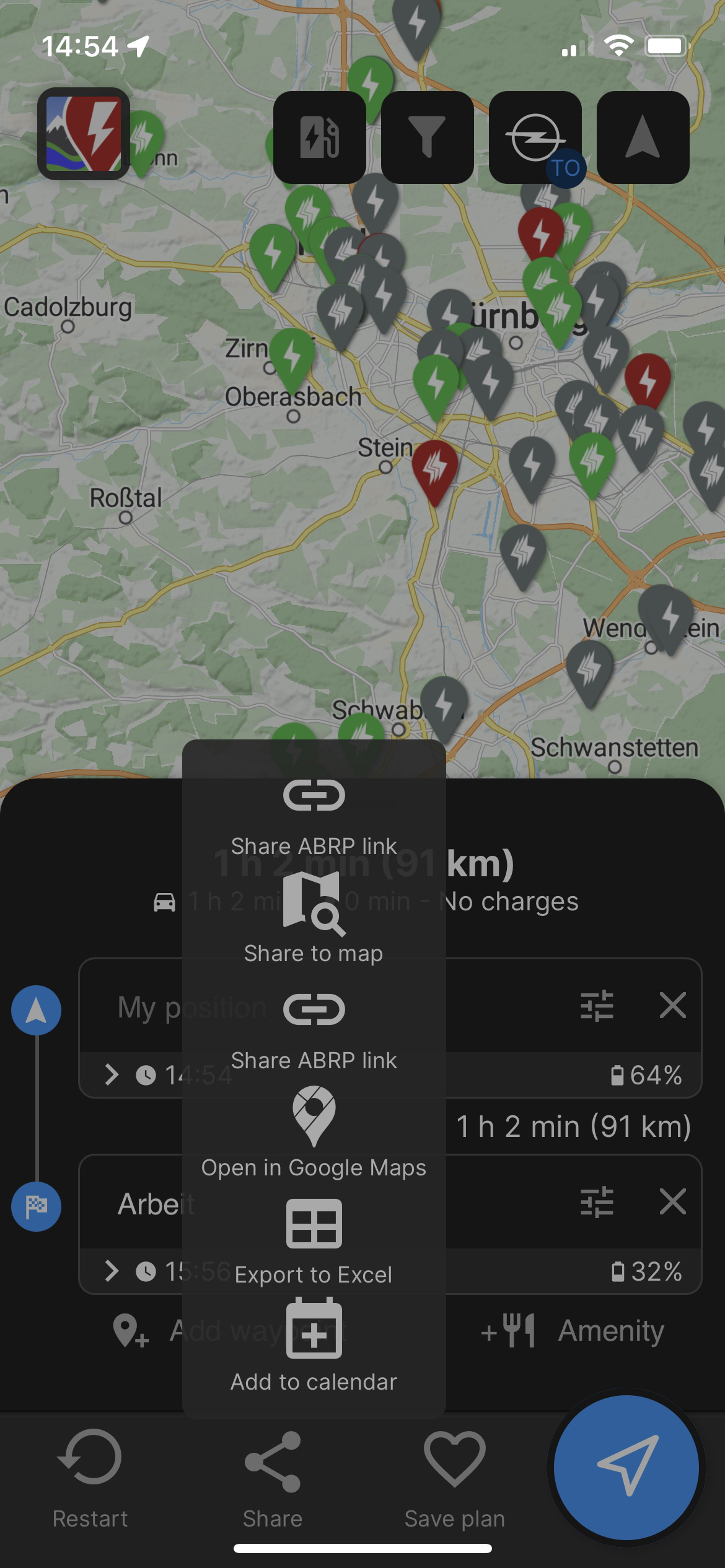 "Share ABRP link" appears twice