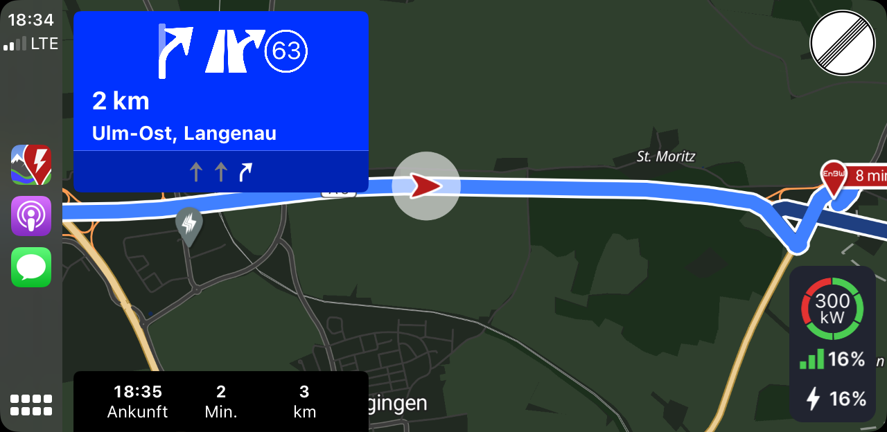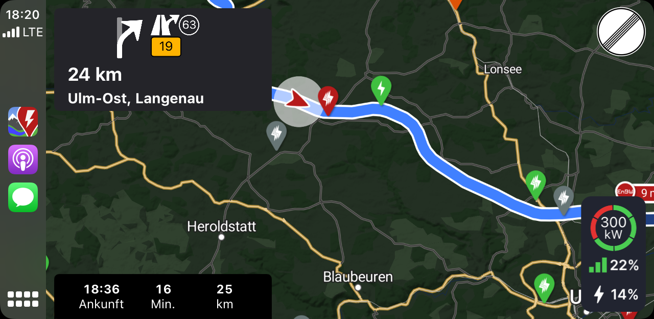The status of the charging park to be approached next on the CarPlay display is not live.